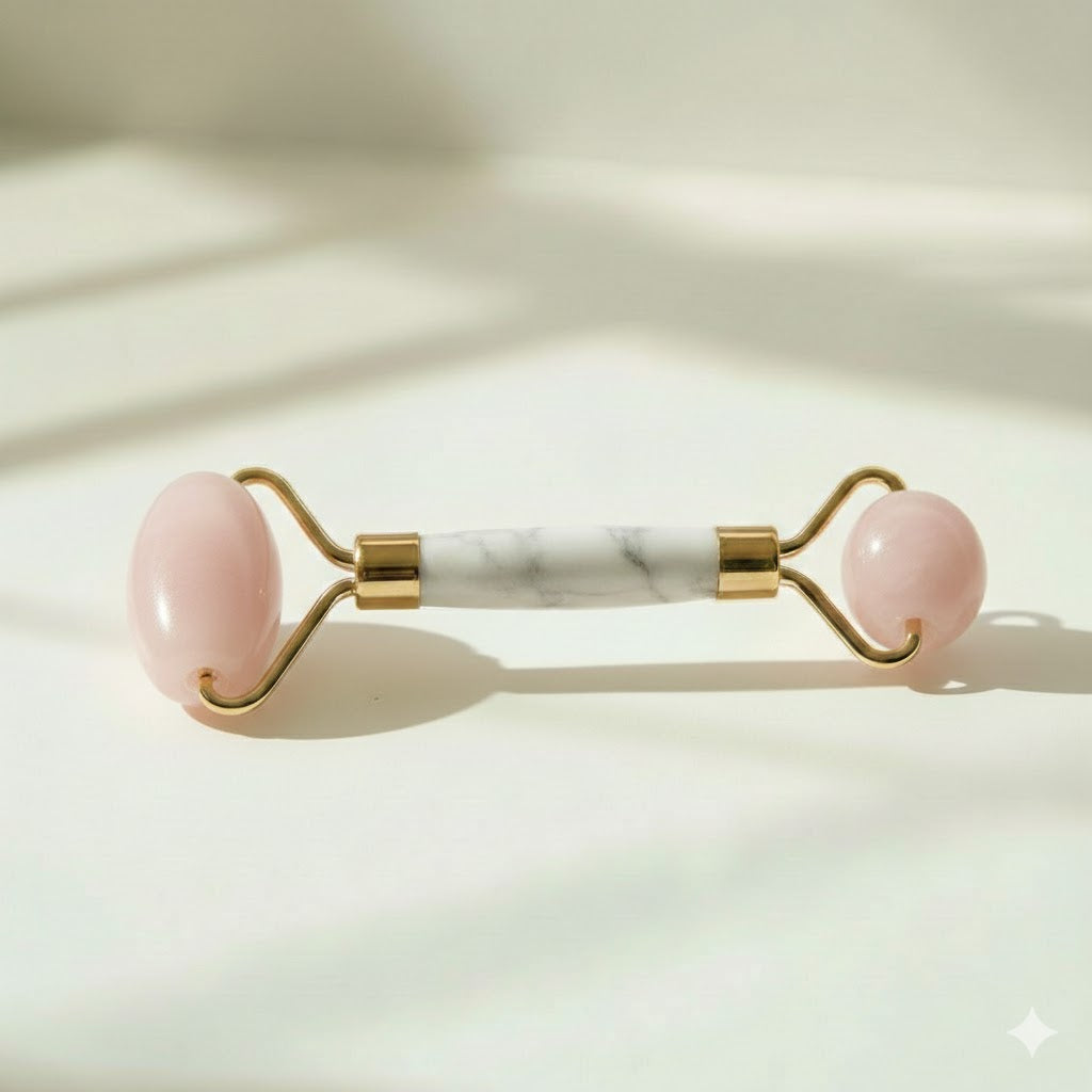 Non tutti i rulli sono uguali. Il nostro è progettato per durare: manico in marmo bianco rinforzato per una presa solida e supporti placcati oro con sistema noise-free anti-cigolio. Ogni pietra è tagliata a mano e lucidata per scivolare sulla pelle con la massima delicatezza, offrendoti un vero trattamento spa a casa tua.